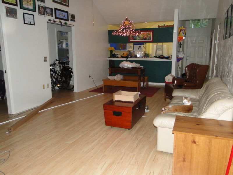 So, our G-ville house is starting to take shape. They finished installing our floors August 24, and we started putting the house together…getting out of the garage and patio and boxes and into the house. Now all we really have left to do is paint the master bath, finish stripping the wallpaper in and paint the extra bath, and finish stripping the wallpaper and paint the rest of the kitchen. For those of you who haven’t seen my tweets, I am not a huge fan of stripping wallpaper, especially when it doesn’t want to cooperate. But we have a neighbor who knows someone with a steamer, and an 8 foot ladder which we will need for the kitchen, so hopefully our house will be complete soon. Then I just have to get that indoor-outdoor carpet unglued from the patio floor, and paint that, and we’ll be really complete. Trying to plan a trip up there for the last week of September, so we can catch a Cowsills show and a Susan and Russ show in the Orlando area that week.