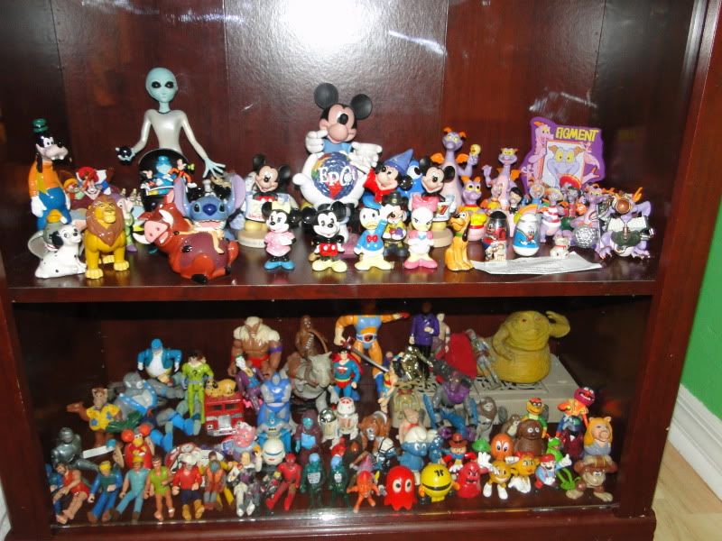 My fixed shelves with many of my nostalgic childhood toys, in the corner of the office: